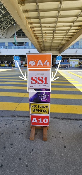 Sabiha Gökçen Havalimanı'na geldiğinizde, pasaport işlemlerinizi tamamlayıp bagajlarınızı aldıktan sonra, lütfen havalimanı binasından çıkış kapısına doğru ilerleyin. Kapıdan çıktığınızda, tam önünüzde bir yaya geçidi göreceksiniz. Karşılama tabelamız, SS1 işareti ile, yaya geçidinin sonunda, 9-10 numaralı kolonun karşısında, asma köprünün altında konumlanmıştır. Lütfen isim ve soyisminizi karşılama ekibimize iletin; onlar sizi aracınıza yönlendirme konusunda yardımcı olacaklardır. Havalimanındaki operasyonel nedenlerden dolayı, aracınız sizi en az 10 dakika ve en fazla 20 dakika içerisinde alacaktır.